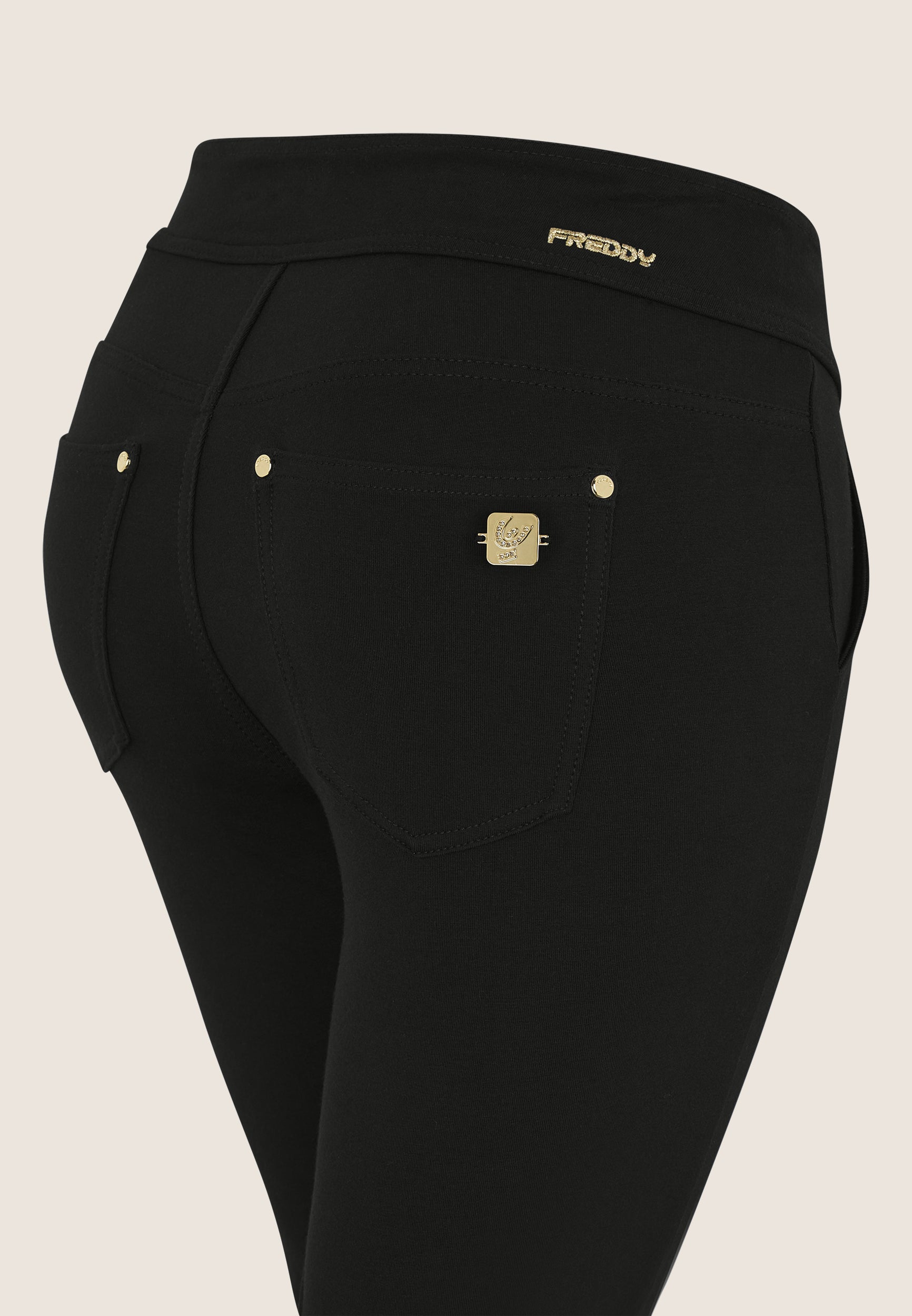 Comfort and style come together in these N.O.W. trousers made from soft organic cotton jersey with a mid-rise waistband. The skinny fit is slightly flared at the bottom, while the rivet-trimmed back pockets with FREDDY cameo and decorative stitching on the waistband and in the middle of the leg add a neat and unique touch.
