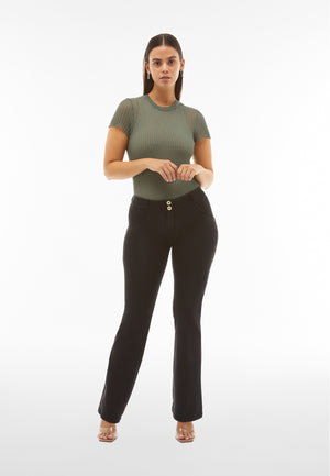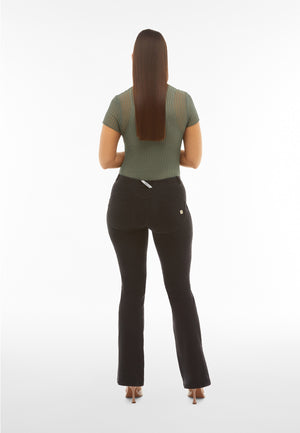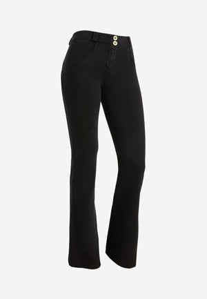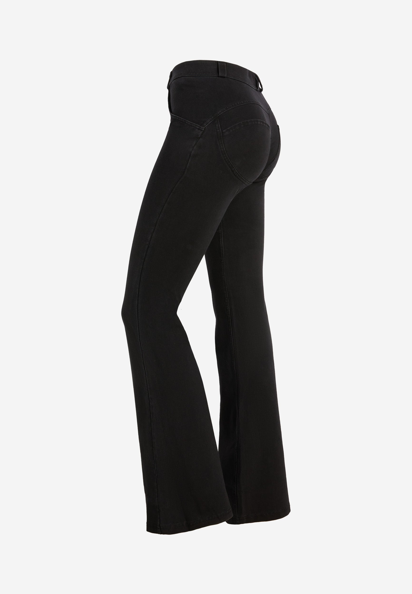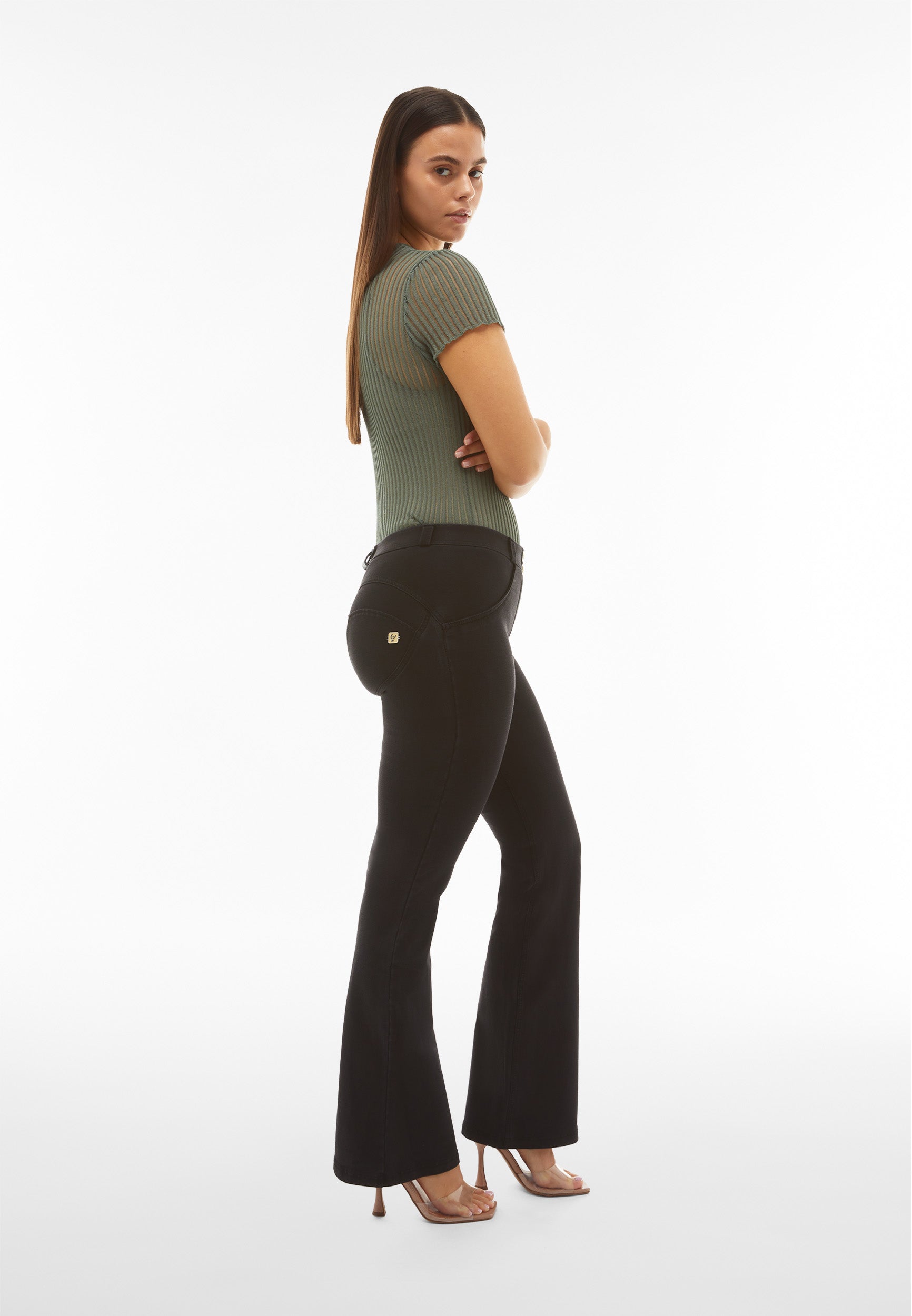 Push-up jeans from the WR.UP® line with a flared fit: close-fitting at the hips and thighs, wider at the bottom with a flared effect. The model has a regular waistband with two buttons, belt loops, a regular length and is made of stretch jersey fabric with a denim effect, made from organic cotton and recycled elastane: a sustainable choice by Freddy to emphasize your femininity in harmony with the love for our planet. The slightly vintage charm of the flared hem combines with the elasticity of the fabric to express your femininity. It also features Freddy's patented WR.UP® technology, which enhances the silhouette and gives a pleasant push-up effect thanks to a special system of inserts and seams. With Freddy, style and sustainability come together to enhance your beauty in complete comfort.