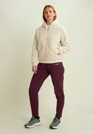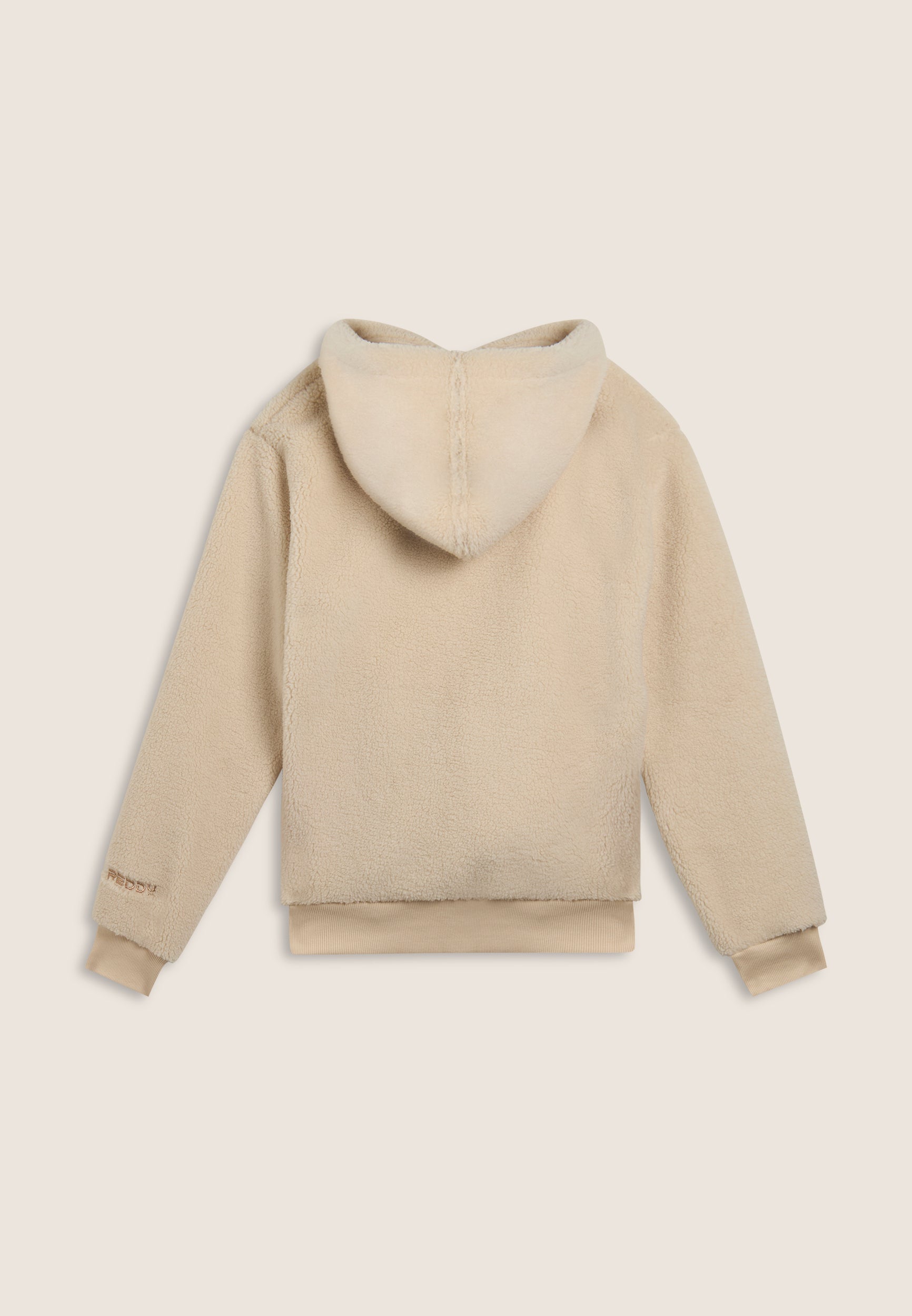 Damenjacke aus Sherpa-Fleece mit bequemer Passform und durchgehendem Reissverschluss. Die verstellbare Kapuze mit Kordelzug und die Ärmel mit Rippbündchen sorgen für einen bequemen Sitz. Die FREDDY-Stickerei aus goldenem Faden am linken Ärmelabschluss sorgt für einen edlen Touch. Ausgestattet mit paspelierten Leistentaschen.