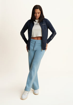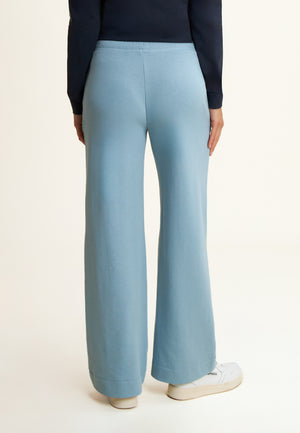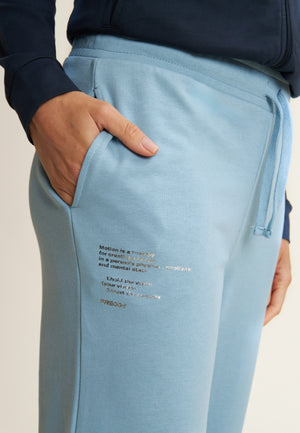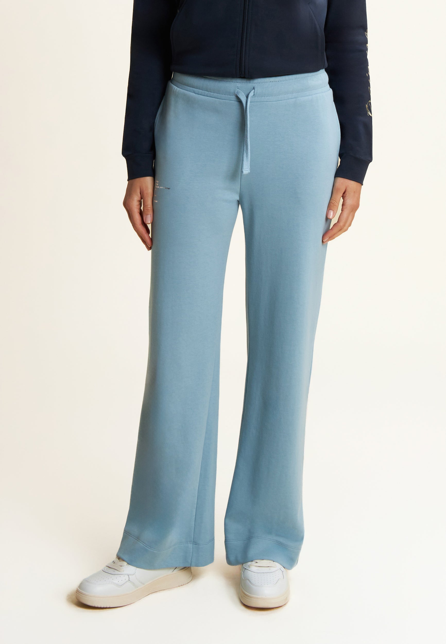 Pantalon de sport en French-Terry avec une jambe large et une coupe normale. La taille normale avec élastique intérieur et cordon de serrage assure le confort, tandis que le graphique sur le côté droit et les poches françaises sur le devant complètent le design moderne.