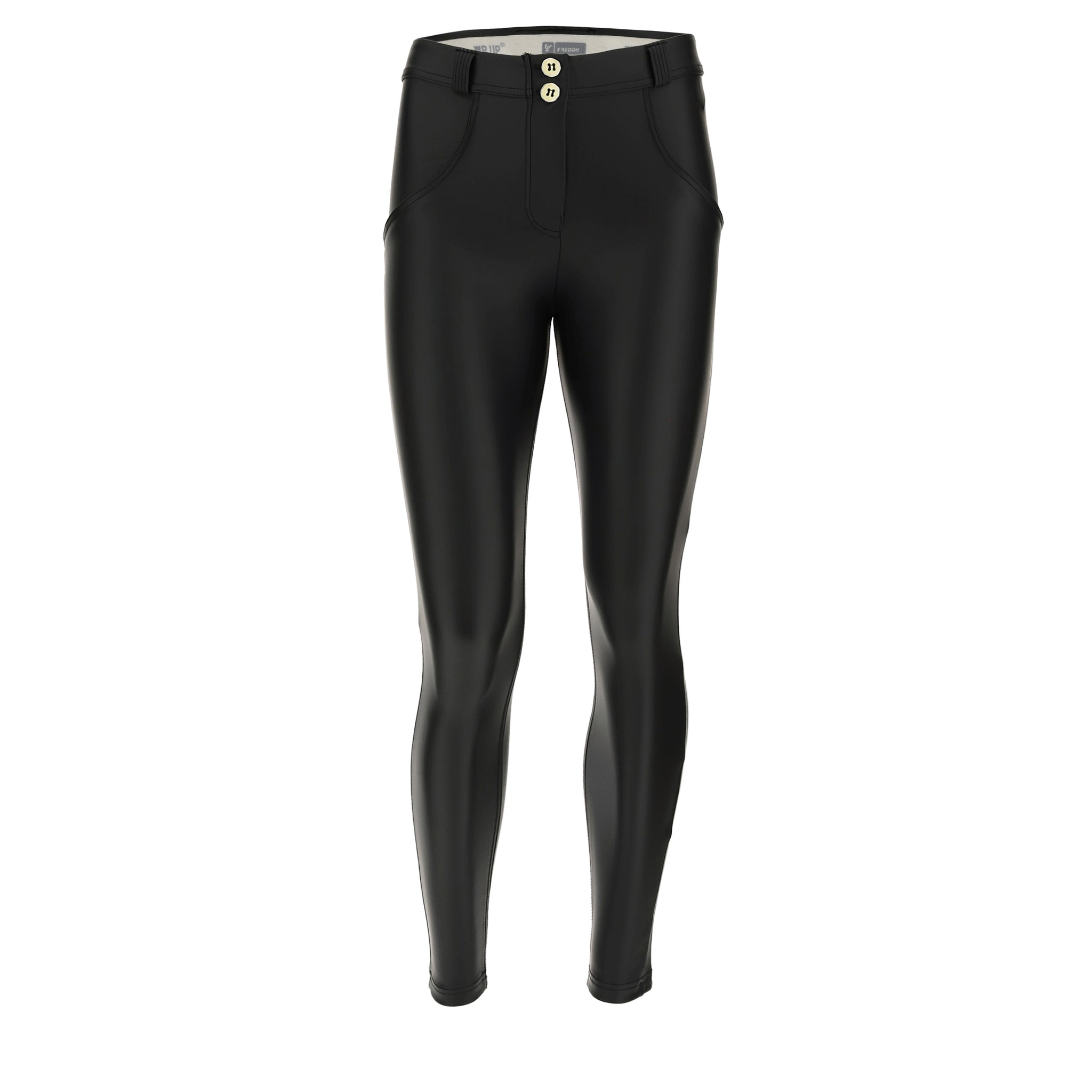 Le pantalon push-up WR.UP® de Freddy est en similicuir stretch, fabriqué à partir de matériaux recyclés. Le modèle Regular Waist a une fermeture à deux boutons et une longueur moderne 7/8 jusqu'à la cheville. Grâce à sa coupe superskinny, le pantalon s'adapte parfaitement à la silhouette et assure un grand confort, liberté de mouvement comprise. La technologie brevetée WR.UP® assure en outre, grâce à un système spécial d'empiècements et de coutures, un effet de modelage et de soulèvement qui lisse la silhouette et met parfaitement en valeur les formes de chaque femme.