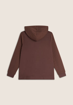 Dieses komfortable Sweatshirt aus hauchdünnem Viskosefleece ist perfekt für alle, die Wärme und Raffinesse suchen. Die Kapuze und die Ärmel aus geflochtenem, gebondetem Fleece verleihen ihm eine einzigartige und raffinierte Note, indem sie an die gestrickte Wolloptik erinnern. Ein appliziertes Logo auf der linken Unterseite, Innentaschen und ein roségoldener Reissverschluss vervollständigen den lässigen und modischen Look. Ärmel und Saum mit Bündchen und kleinen Seitenschlitzen.