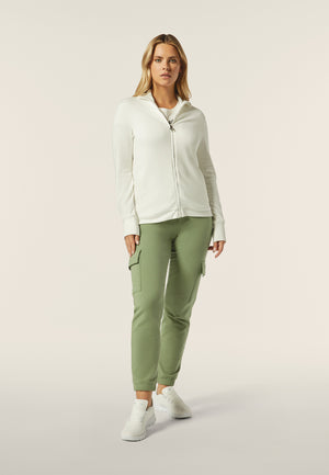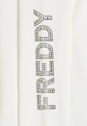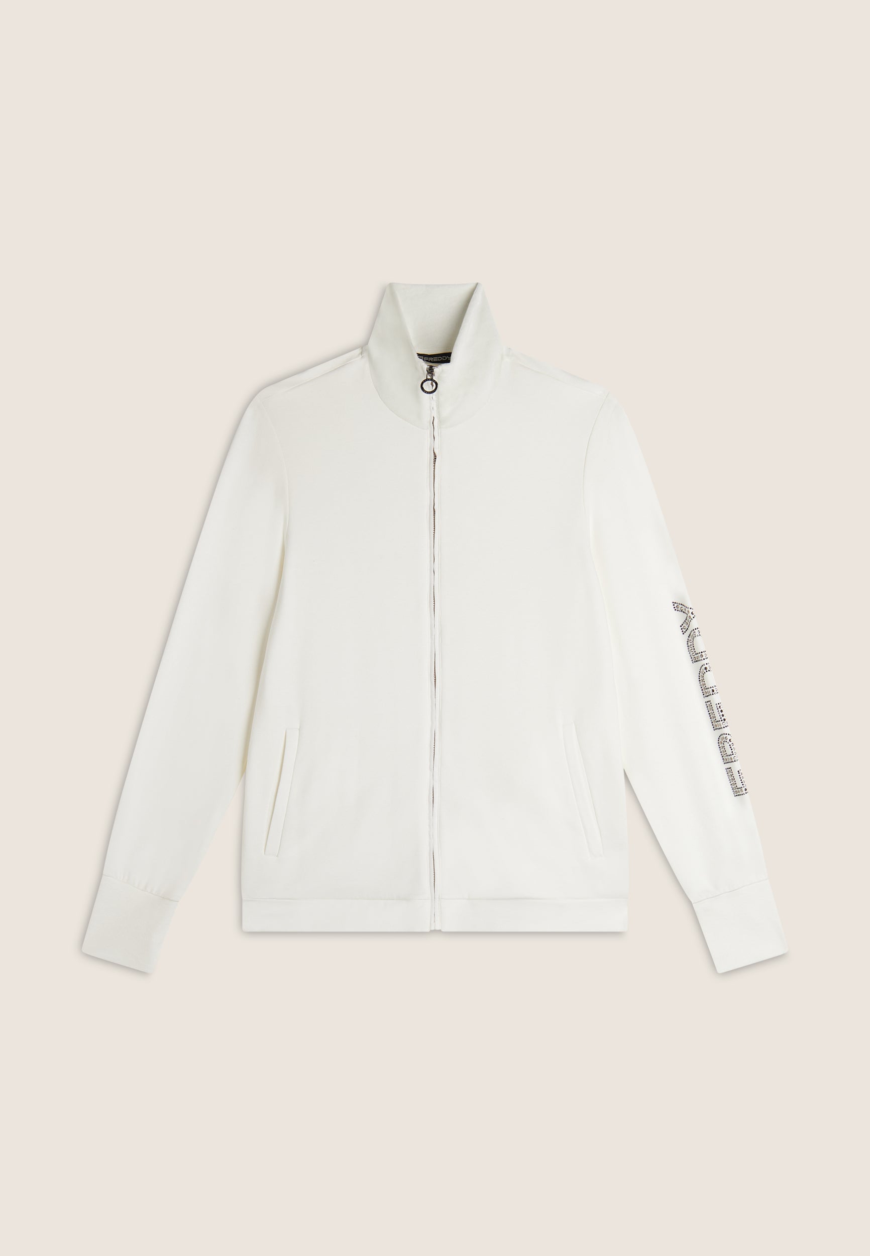 Eleganz und Komfort vereinen sich in dieser Sweatjacke mit Reissverschluss und hohem Kragen aus weichem, glänzendem Viskose-Stretch-Sweatshirtstoff. Das grosse FREDDY-Logo aus Strasssteinen am unteren Ende des Ärmels sorgt für einen unverwechselbaren Touch, während die paspelierten Leistentaschen und der hohe Samtkragen praktisch und stilvoll sind. Hohe Rippenbündchen und ein Reissverschluss vervollständigen dieses vielseitige und anspruchsvolle Kleidungsstück.