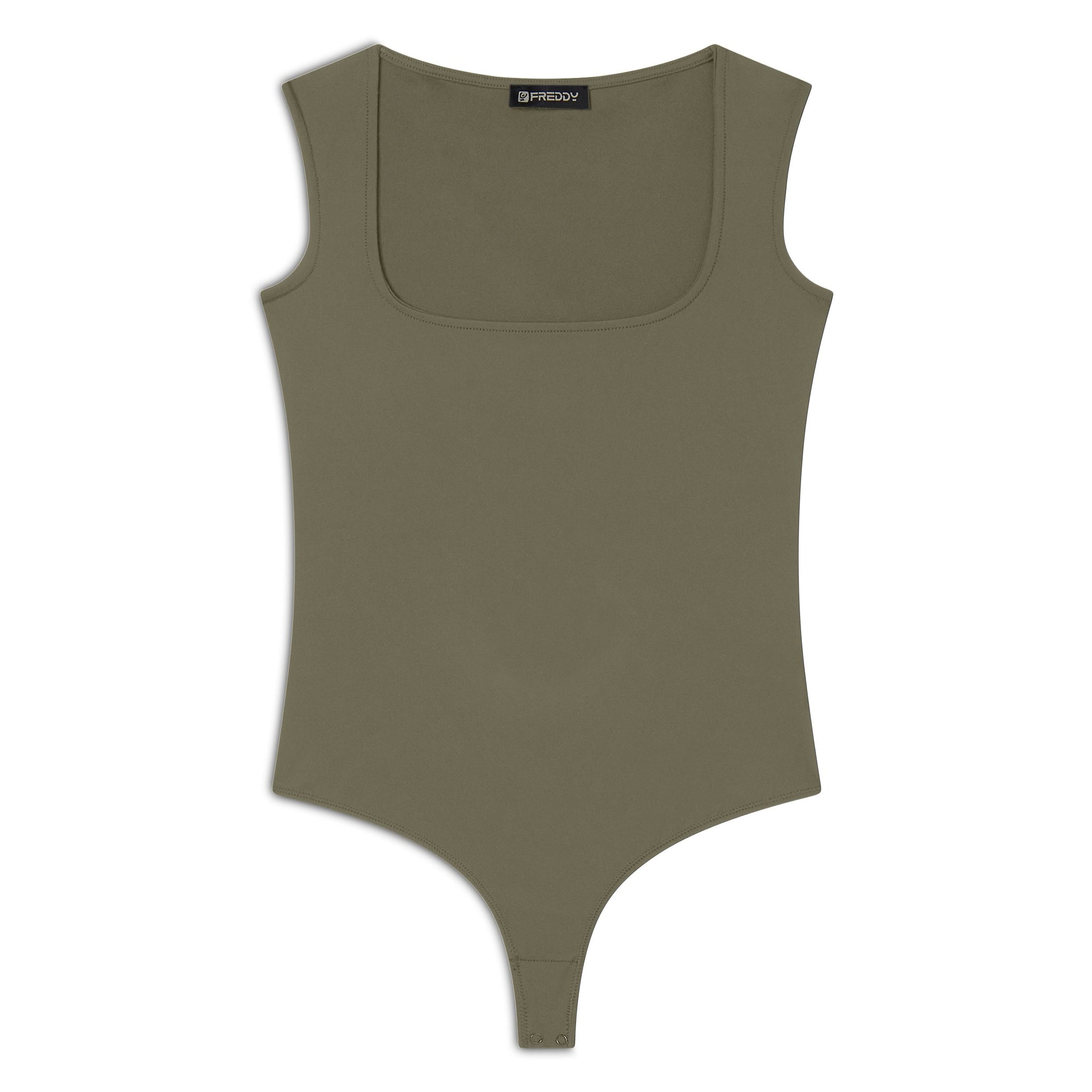 Dieser schmal geschnittene Body aus Heavy-Stretch-Nylon-Jersey ist ein Must-Have. Der weiche, atmungsaktive Stoff umhüllt den Körper, während der brasilianische Stil und der weite, quadratische, ärmellose Ausschnitt die Figur mit Eleganz betonen. Ein kleines FY-Logo unterhalb des hinteren Halsausschnitts ist ein dezentes, aber unverwechselbares Detail. Praktisch zu tragen dank des Druckknopfverschlusses am Saum.