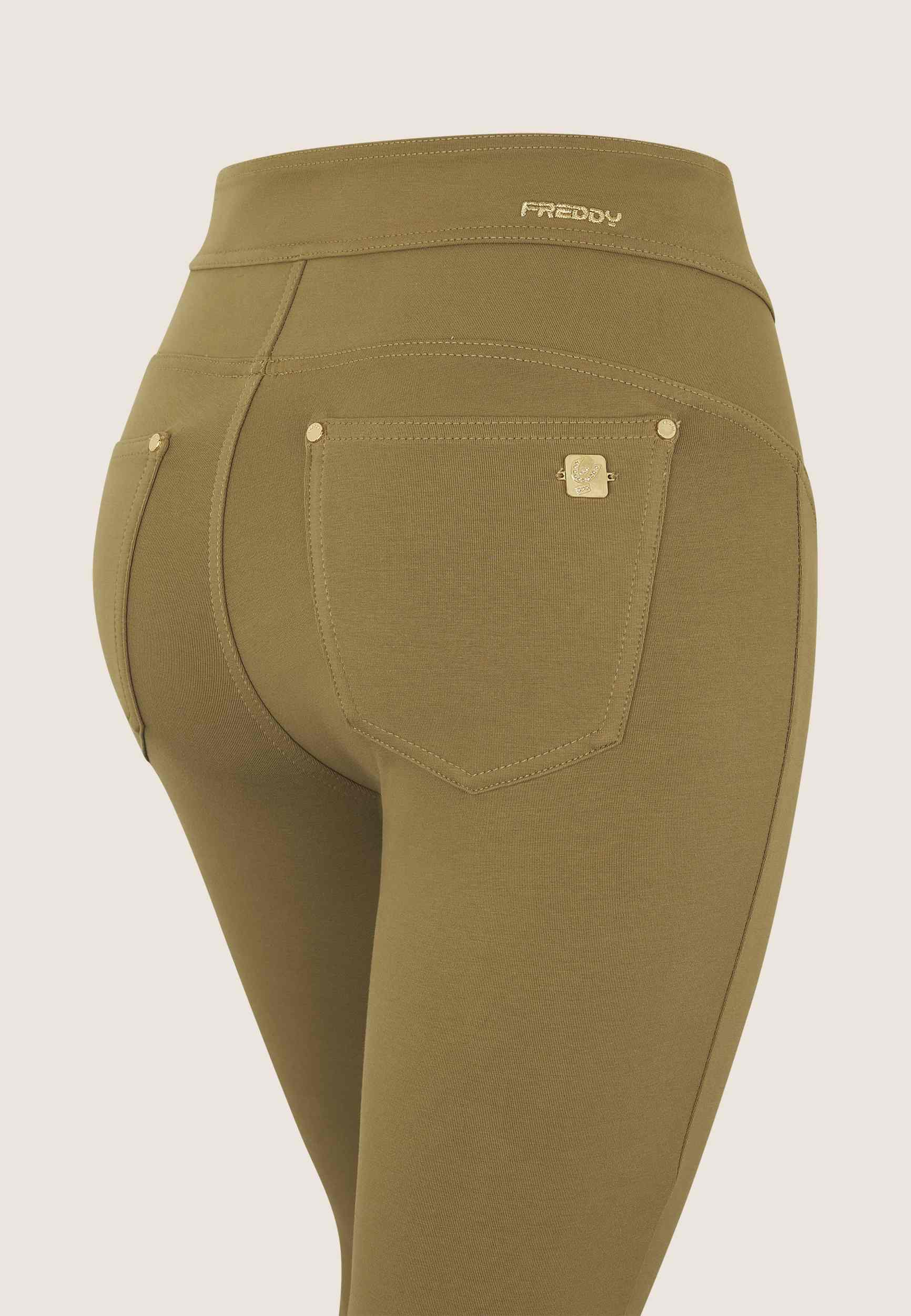 Diese Hose N.O.W. aus Bio-Baumwolljersey hat eine Superskinny-Passform, die der Silhouette schmeichelt. Der hohe Taillenbund und die normale Länge machen sie extrem vielseitig, während die nietenbesetzten Gesässtaschen mit FREDDY-Kamee sowie die Ziernähte am Taillenbund und in der Mitte der Beine den Look mit einem eleganten Touch abrunden.