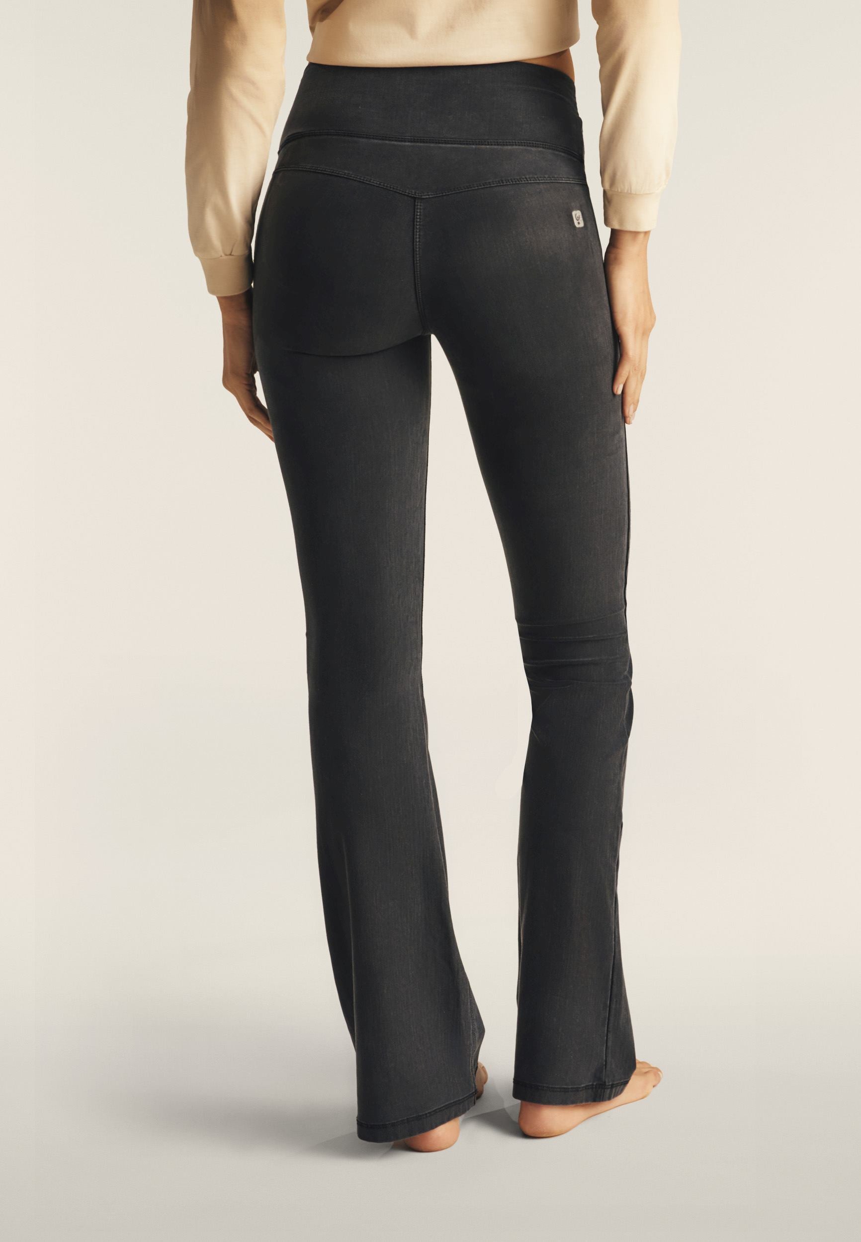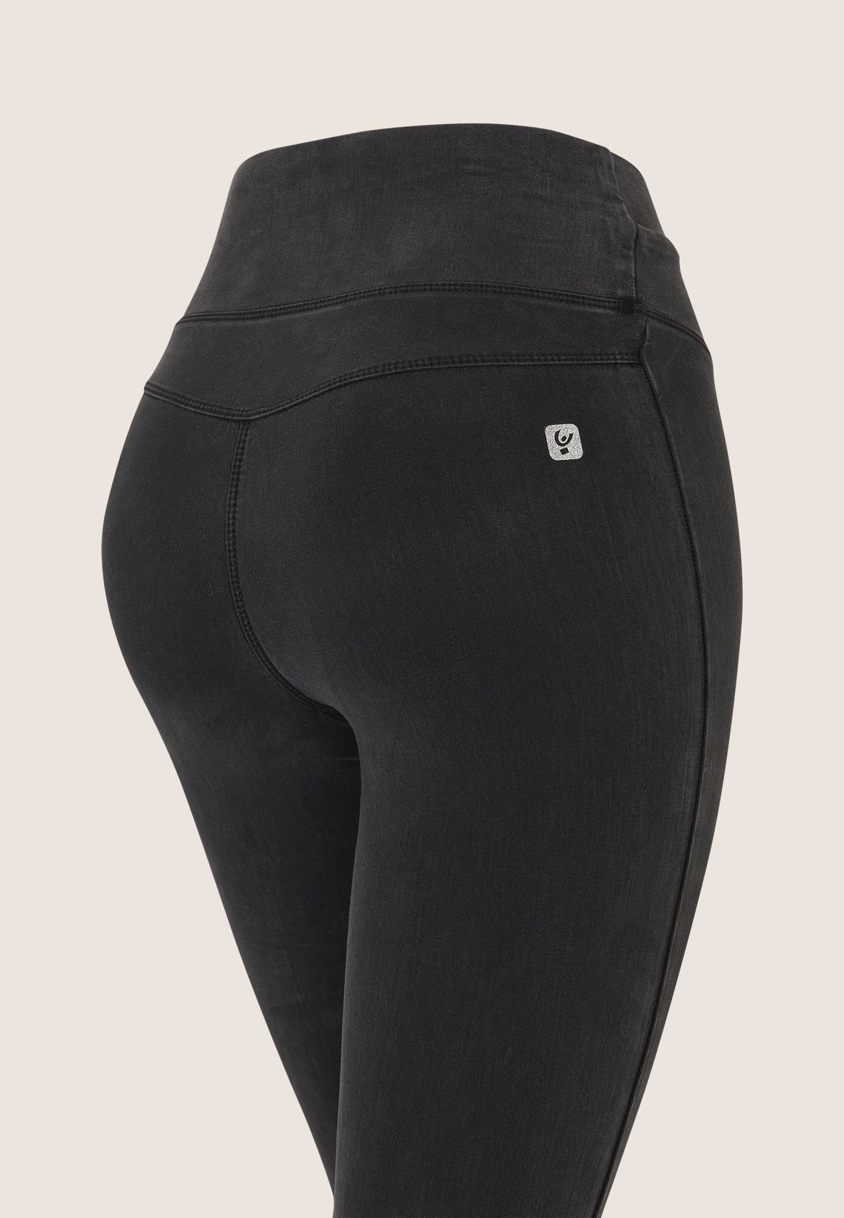 Diese Jeggings N.O.W. haben eine Skinny-Passform und ein ausgestelltes Bein. Sie sind aus TENCELT Lyocell-Jersey gefertigt, einer ökologischen und biologisch abbaubaren Faser, die mit einer Waschung behandelt wurde, die eine Denim-Optik mit dem Komfort von Jersey verbindet. Der hohe, überkreuzte Taillenbund mit Knoteneffekt betont die Figur, während der angenehm zu tragende, verschleissarme Stoff für Komfort und Nachhaltigkeit sorgt. Der FREDDY-Logoprint an der Seite macht den Look komplett.
