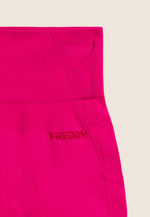 Diese nahtlosen kurzen Leggings sind für eine perfekte Passform beim Sport konzipiert. Der hohe Bund mit Rippstrickbündchen bietet Halt und Komfort, während die Rippstrick-Einsätze auf der Rückseite die weiblichen Kurven sanft formen und stützen. Das FREDDY-Logo auf der Vorderseite und das ikonische "omino" auf der Rückseite runden das sportliche und dynamische Design ab. Ein ideales Kleidungsstück für alle, die beim Sport Stil und Funktionalität suchen.