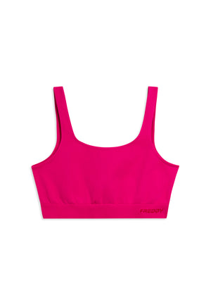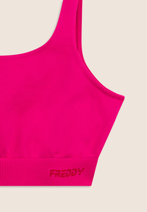 Dieses nahtlose Sport-Top bietet mittleren Halt und eignet sich perfekt für sportliche Aktivitäten. Das gerippte Unterbrustband mit FREDDY-Logo sorgt für zusätzlichen Halt, während der weite Rundhalsausschnitt vorne und hinten volle Bewegungsfreiheit ermöglicht. Die normalen Träger runden das funktionale Design ab. Der nahtlose Funktionsstoff reduziert die Nähte auf ein Minimum und bietet höchsten Komfort bei körperlicher Aktivität.