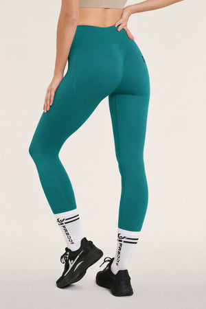 Die nahtlosen 7/8-Leggings mit hoher Taille bieten eine enganliegende und bequeme Passform, ideal für sportliche Aktivitäten. Die gerippten Einsätze auf der Rückseite formen und stützen sanft die weiblichen Kurven, während das nahtlose Material für ein weiches und bequemes Tragegefühl sorgt. Das FREDDY-Logo auf der Vorderseite und das ikonische "omino" auf der Rückseite verleihen diesem Sportartikel eine unverwechselbare Note.