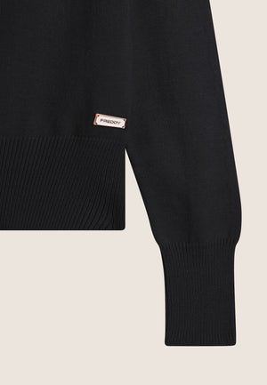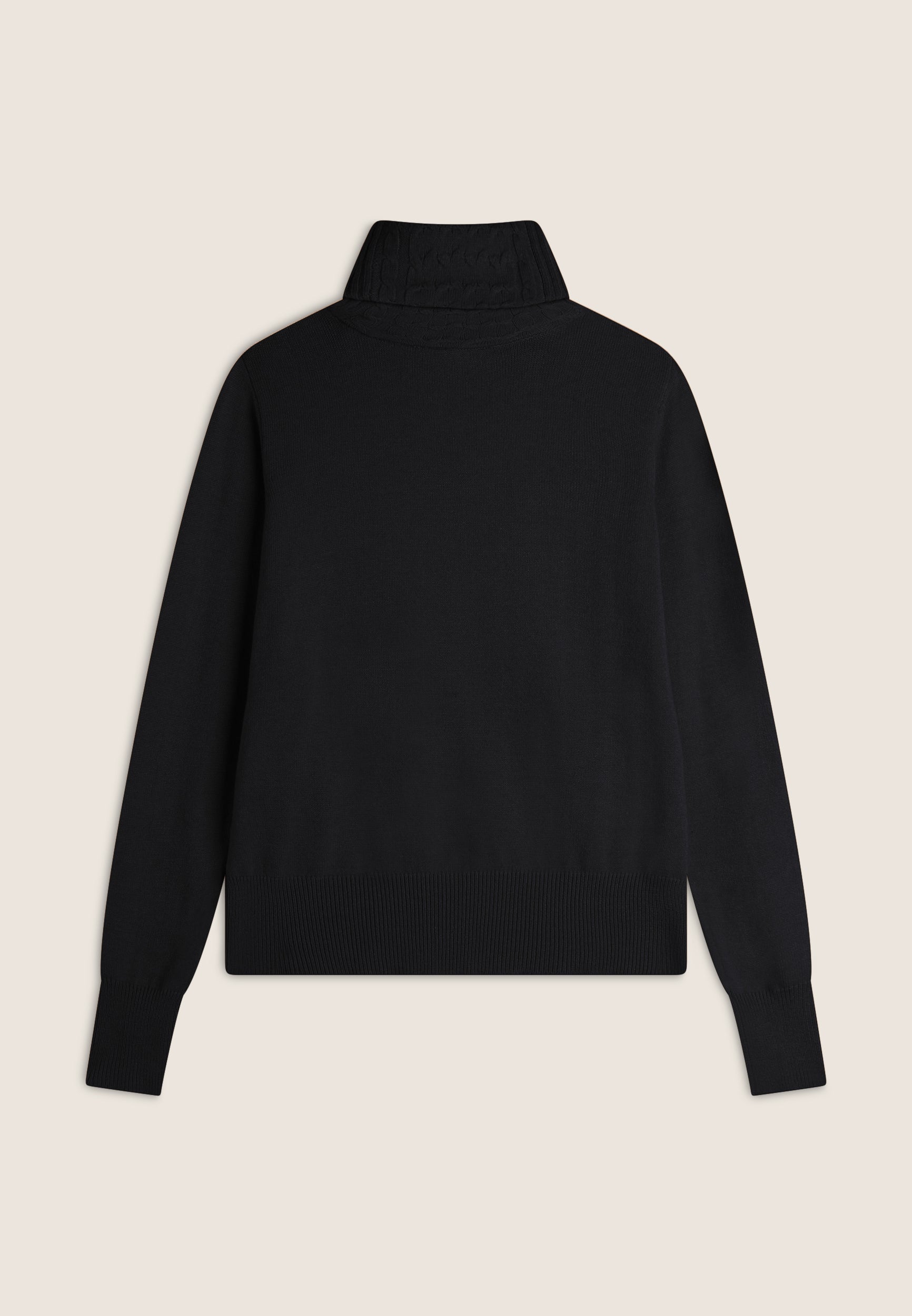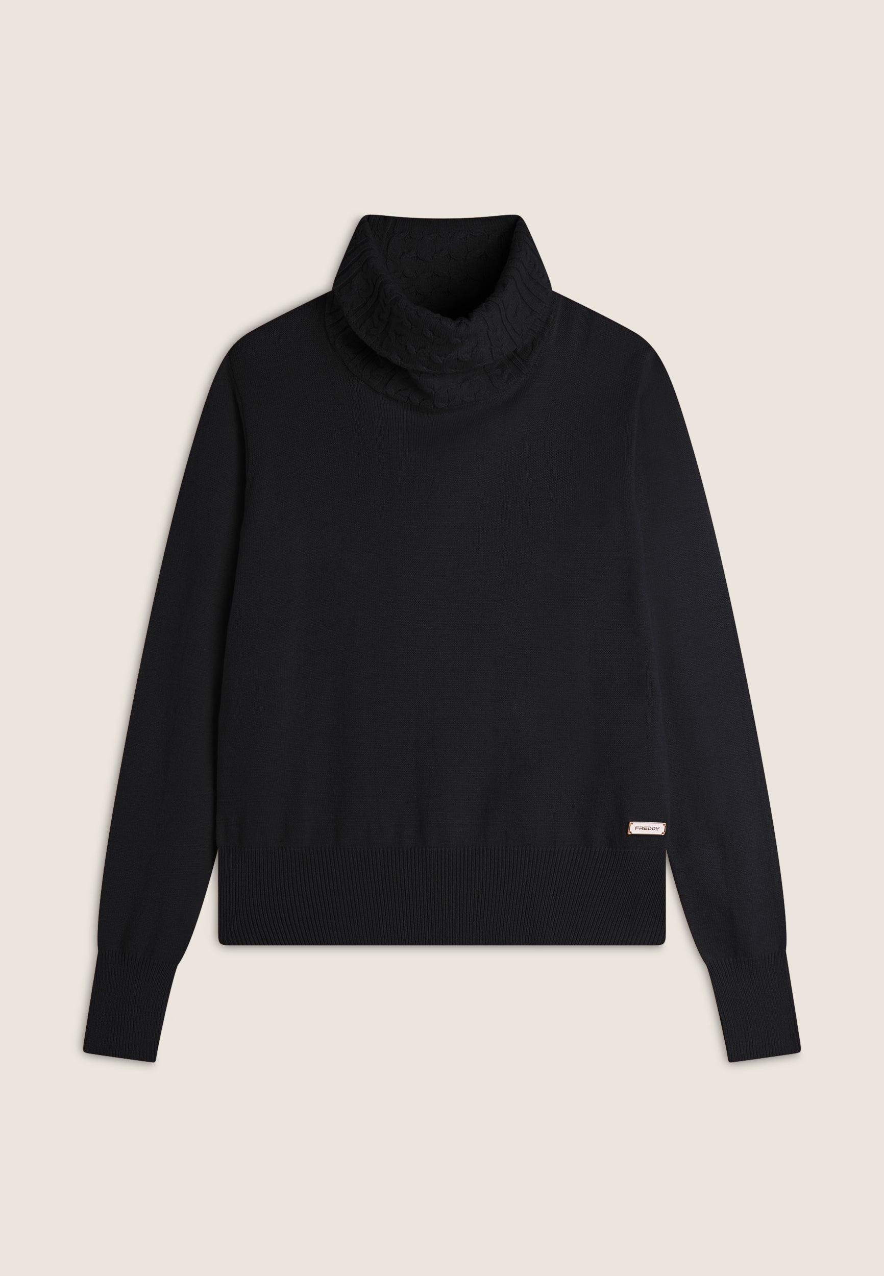 Trikot in normaler Passform aus Viskose-Polyester-Trikot, einem glatten und atmungsaktiven Stoff. Der hohe Kragen mit Zopfmuster und das Logo auf der Unterseite verleihen ihm einen eleganten Touch. Taschenlos für ein essentielles Design. Rippenbündchen an Saum und Ärmeln verbessern die Passform und sorgen für mehr Bewegungsfreiheit.
