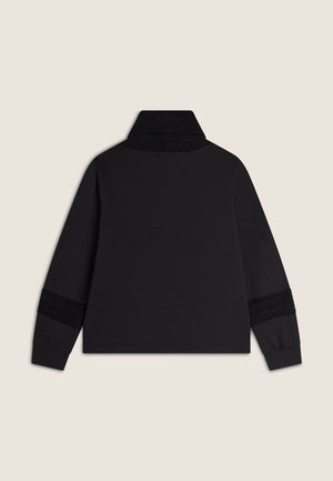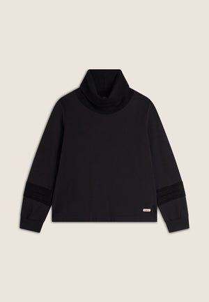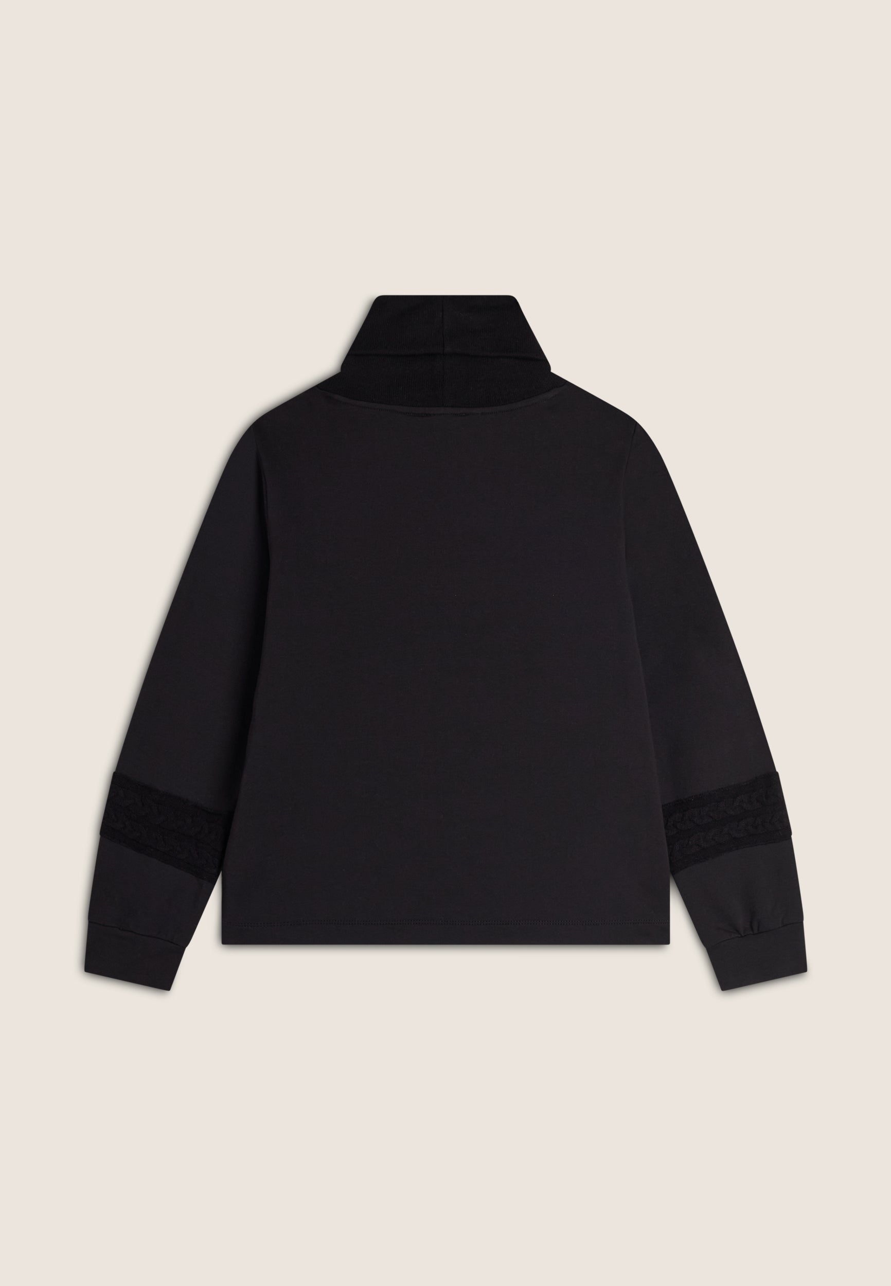 Dieses Sweatshirt hat einen gerippten hohen Kragen und Trikotstrick-Ärmel-Details für einen eleganten Touch. Es ist aus einem weichen, atmungsaktiven und warmen Fleece aus Baumwolle und Modal gefertigt und hat ein taschenloses Design für eine klare Linie. Ärmel mit Bündchen und ein gerader Saum mit kleinen Seitenschlitzen sorgen für raffinierten Komfort.