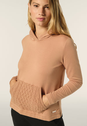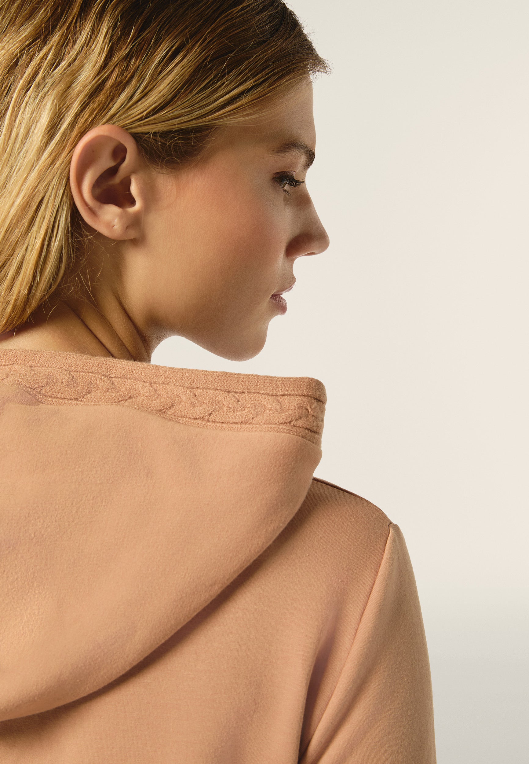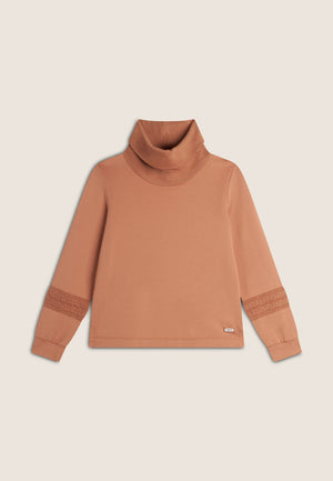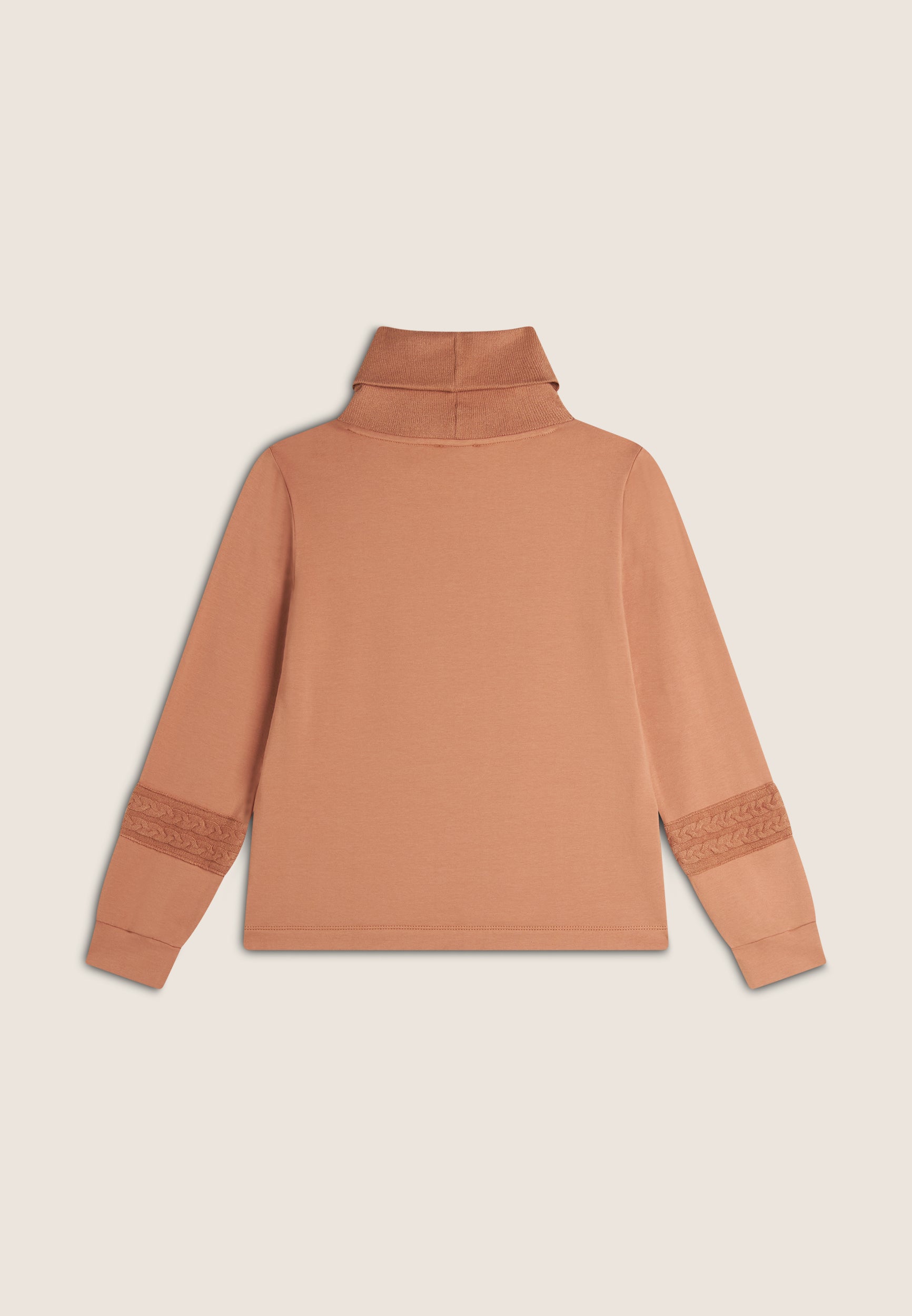 Dieses Sweatshirt hat einen gerippten hohen Kragen und Trikotstrick-Ärmel-Details für einen eleganten Touch. Es ist aus einem weichen, atmungsaktiven und warmen Fleece aus Baumwolle und Modal gefertigt und hat ein taschenloses Design für eine klare Linie. Ärmel mit Bündchen und ein gerader Saum mit kleinen Seitenschlitzen sorgen für raffinierten Komfort.