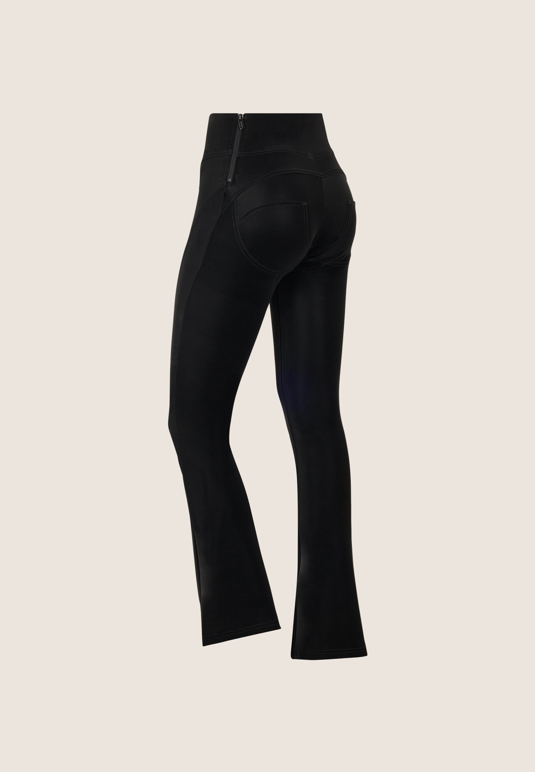 WR.UP® superskinny Push-up-Hose mit Mini-Schlag unten aus recyceltem Kunstleder im Wet-Look. Die vertikalen Nähte entlang des Beins verschlanken und betonen die Silhouette, für einen kühnen und femininen Look. Hohe Taille mit seitlichem Verschluss.