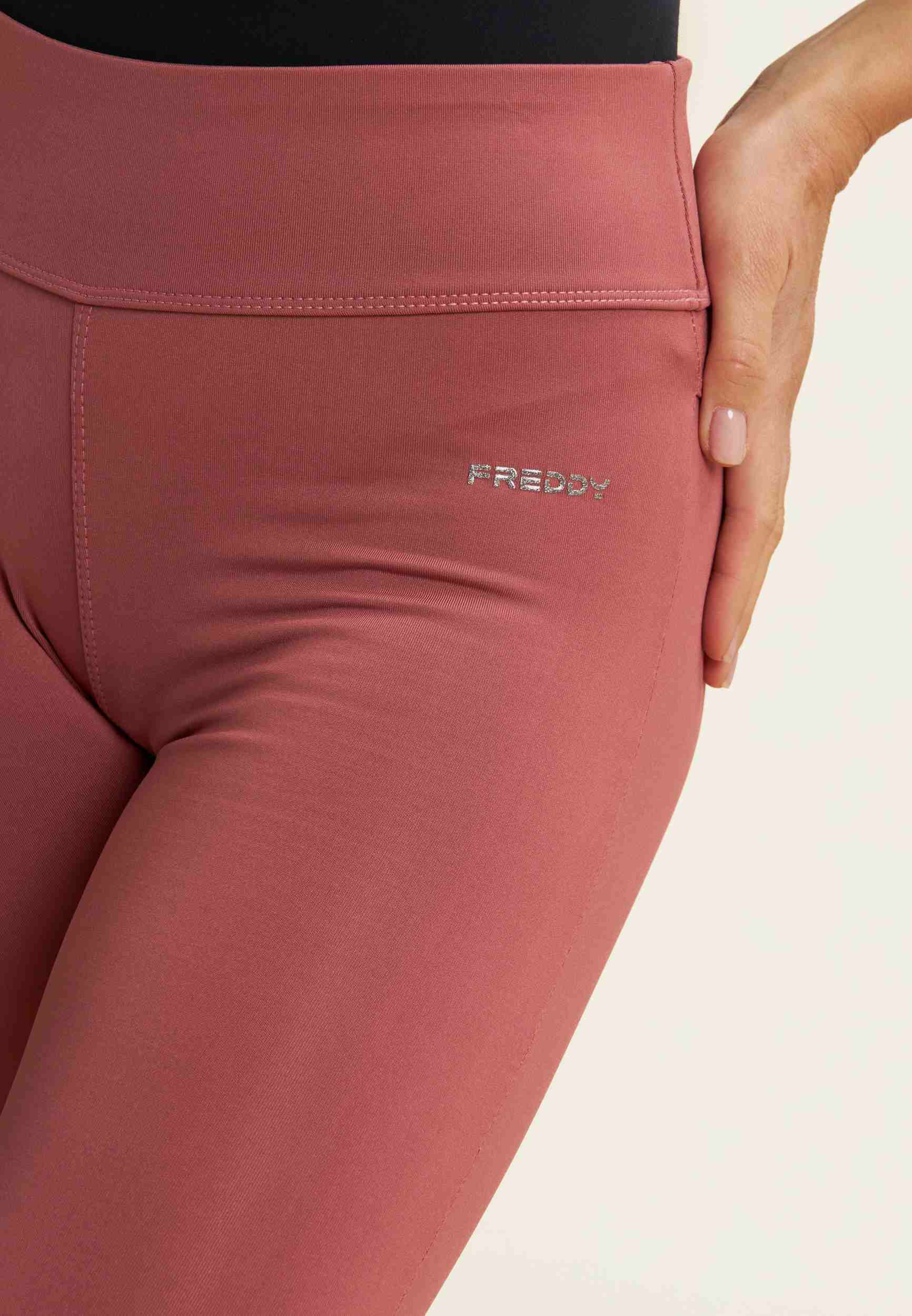 Bringen Sie Ihr Training und Ihren Stil auf ein neues Niveau mit unseren N.O.W.® CORE Leggings mit superskinny Passform, mittlerer Taille und 7/8 Länge am Knöchel. Die Leggings aus D.I.W.O.®, einem speziellen technischen Polyestergewebe, das aus recycelten Flaschen gewonnen wird, sind von Freddy patentiert, um die Atmungsaktivität zu erhöhen und die Wärmeregulierung der Haut zu fördern. Das schlichte Design ohne Taschen verleiht einen minimalistischen und modernen Look, während die kleinen Logos auf der Hüfte einen besonderen Akzent setzen. Perfekt für Sport und Freizeit, kombinieren diese Leggings Funktionalität und Mode und garantieren maximalen Komfort und eine perfekte Passform.