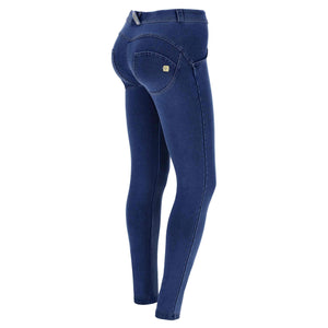 Push-up-Jeggings aus der WR.UP®-Linie aus komfortablem Stretch-Jersey mit Denim-Effekt aus Bio-Baumwolle, die jeden Moment des Tages verschönern können, ohne die Bewegungsfreiheit einzuschränken. Das Modell hat einen hohen Taillenbund mit mittigem Reissverschluss, eine normale Länge und Skinny-Passform für ein angenehmes Anschmiegen an die Körperlinien. Die Linien des Körpers, hervorgehoben durch den hohen Taillenbund, der die Taille formt, und die Enge der Skinny-Passform, werden durch den modellierenden Effekt der von Freddy patentierten WR.UP®-Technologie noch verstärkt, die die Silhouette dank eines speziellen Systems von Einsätzen und Nähten, die die Formen hervorheben und den Kurven Halt geben, verbessert.
