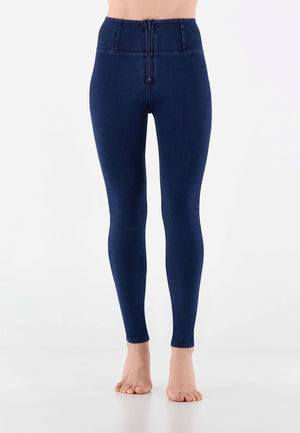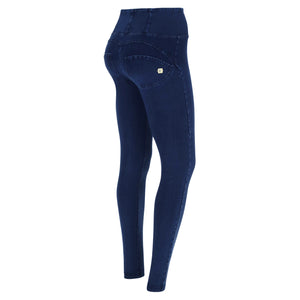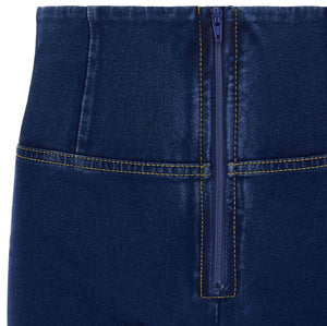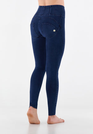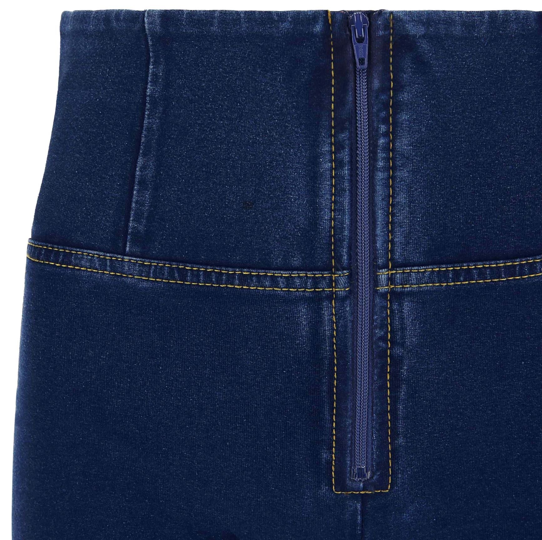 Push-up-Jeggings aus der WR.UP®-Linie aus komfortablem Stretch-Jersey mit Denim-Effekt aus Bio-Baumwolle, die jeden Moment des Tages verschönern können, ohne die Bewegungsfreiheit einzuschränken. Das Modell hat einen hohen Taillenbund mit mittigem Reissverschluss, eine normale Länge und Skinny-Passform für ein angenehmes Anschmiegen an die Körperlinien.Die Linien des Körpers, hervorgehoben durch den hohen Taillenbund, der die Taille formt, und die Enge der Skinny-Passform, werden durch den modellierenden Effekt der von Freddy patentierten WR.UP®-Technologie noch verstärkt, die die Silhouette dank eines speziellen Systems von Einsätzen und Nähten, die die Formen hervorheben und den Kurven Halt geben, verbessert.
