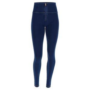 Push-up-Jeggings aus der WR.UP®-Linie aus komfortablem Stretch-Jersey mit Denim-Effekt aus Bio-Baumwolle, die jeden Moment des Tages verschönern können, ohne die Bewegungsfreiheit einzuschränken. Das Modell hat einen hohen Taillenbund mit mittigem Reissverschluss, eine normale Länge und Skinny-Passform für ein angenehmes Anschmiegen an die Körperlinien.Die Linien des Körpers, hervorgehoben durch den hohen Taillenbund, der die Taille formt, und die Enge der Skinny-Passform, werden durch den modellierenden Effekt der von Freddy patentierten WR.UP®-Technologie noch verstärkt, die die Silhouette dank eines speziellen Systems von Einsätzen und Nähten, die die Formen hervorheben und den Kurven Halt geben, verbessert.