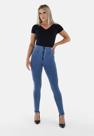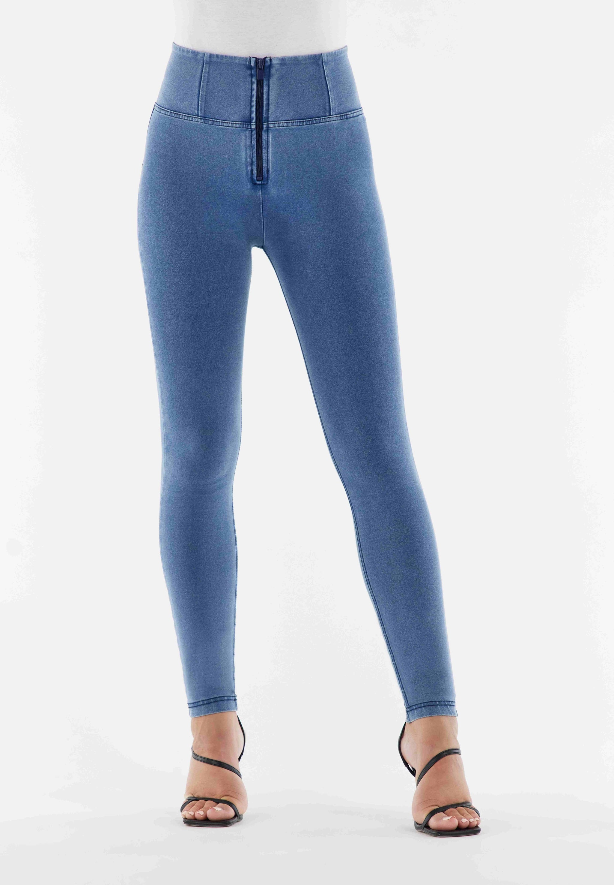 Push-up-Jeggings aus der WR.UP®-Linie aus komfortablem Stretch-Jersey mit Denim-Effekt aus Bio-Baumwolle, die jeden Moment des Tages verschönern können, ohne die Bewegungsfreiheit einzuschränken. Das Modell hat einen hohen Taillenbund mit mittigem Reissverschluss, eine normale Länge und Skinny-Passform für ein angenehmes Anschmiegen an die Körperlinien.Die Linien des Körpers, hervorgehoben durch den hohen Taillenbund, der die Taille formt, und die Enge der Skinny-Passform, werden durch den modellierenden Effekt der von Freddy patentierten WR.UP®-Technologie noch verstärkt, die die Silhouette dank eines speziellen Systems von Einsätzen und Nähten, die die Formen hervorheben und den Kurven Halt geben, verbessert.