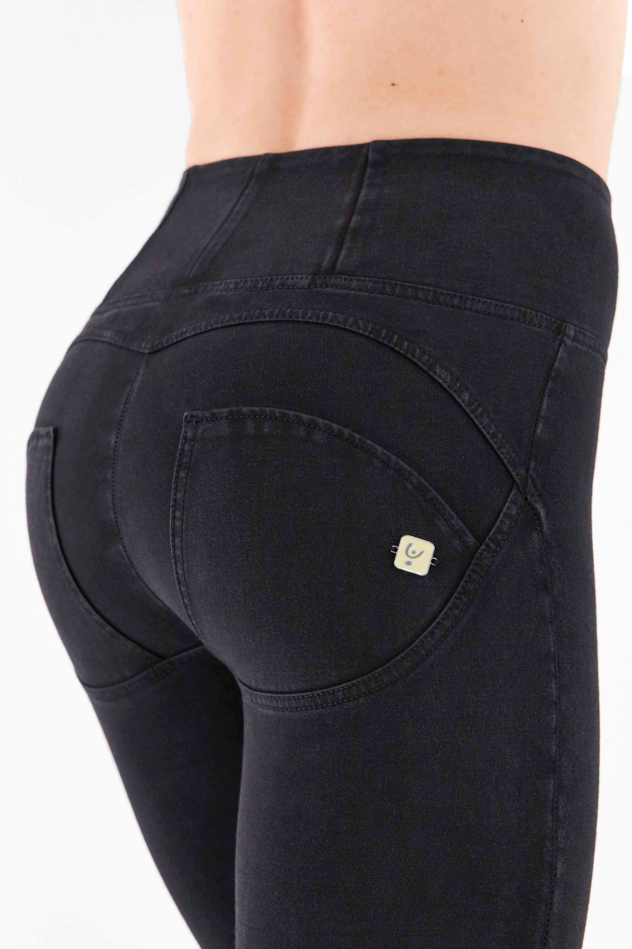 Push-up-Jeggings aus der WR.UP®-Linie aus komfortablem Stretch-Jersey mit Denim-Effekt aus Bio-Baumwolle, die jeden Moment des Tages verschönern können, ohne die Bewegungsfreiheit einzuschränken. Das Modell hat einen hohen Taillenbund mit mittigem Reissverschluss, eine normale Länge und Skinny-Passform für ein angenehmes Anschmiegen an die Körperlinien.Die Linien des Körpers, hervorgehoben durch den hohen Taillenbund, der die Taille formt, und die Enge der Skinny-Passform, werden durch den modellierenden Effekt der von Freddy patentierten WR.UP®-Technologie noch verstärkt, die die Silhouette dank eines speziellen Systems von Einsätzen und Nähten, die die Formen hervorheben und den Kurven Halt geben, verbessert.