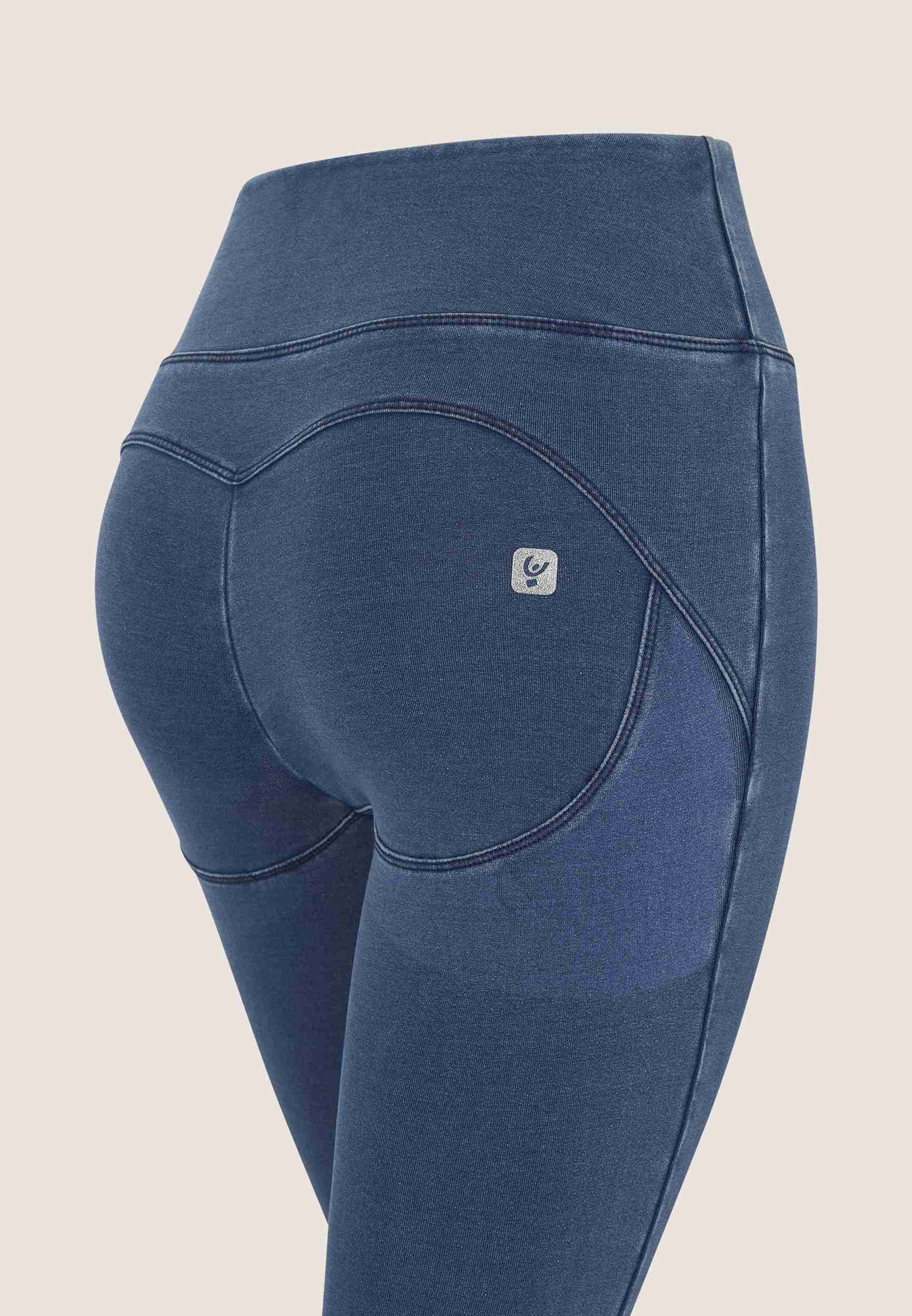Diese Jeggings WR.UP® CORE in Superskinny-Passform aus Bio-Baumwolljersey mit Waschung in Denim-Optik kombinieren Komfort und die formgebende Wirkung der patentierten WR.UP®-Technologie. Der hohe Taillenbund sorgt für eine perfekte Passform, während die gerafften Nähte am Beinabschluss der 7/8-Länge bis zum Knöchel ein einzigartiges Detail verleihen. Das cleane, taschenlose Design ist mit dem kleinen FREDDY Logo auf der linken Hüfte und dem FY Logo auf der rechten hinteren Hüfte verziert.